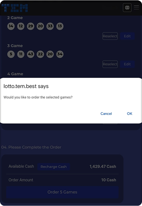 If all the blanks in the [[Game Select]] section are filled with numbers, please press the [[Order 1Games]] button to proceed.